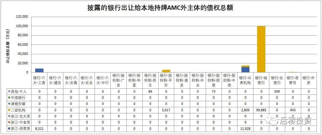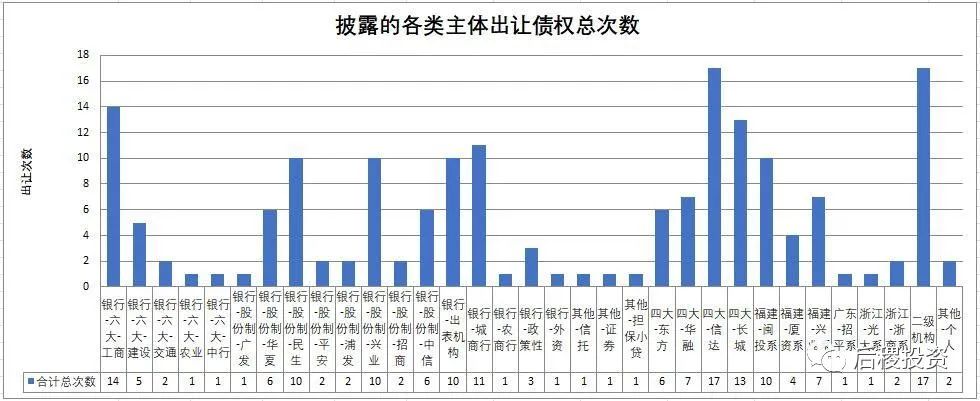 a、從銀行出讓規(guī)模上看,除傳統(tǒng)規(guī)模較大的工行外,城商行是出讓市場的主角,華夏銀行和民生銀行的處理力度相對也較大。