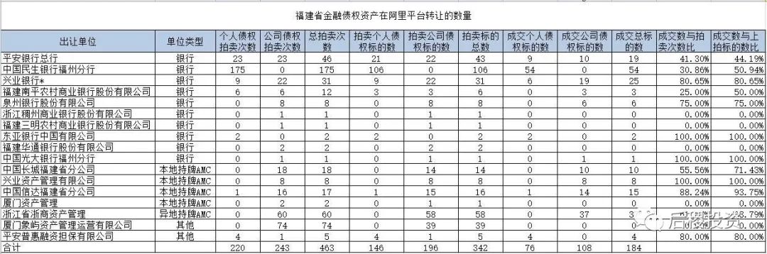 福建省金融債權(quán)資產(chǎn)在阿里平臺轉(zhuǎn)讓成交情況