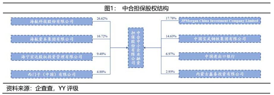 中合中小企業融資擔保股份有限公司(以下簡稱“中合擔保”、“公司”)于2012年成立,是國務院利用外資設立擔保公司的試點項目。截至2021年4月,其直接股東共有8個,海航系(海航科技和海航資本)合計持股43.34%,是第一大股東。