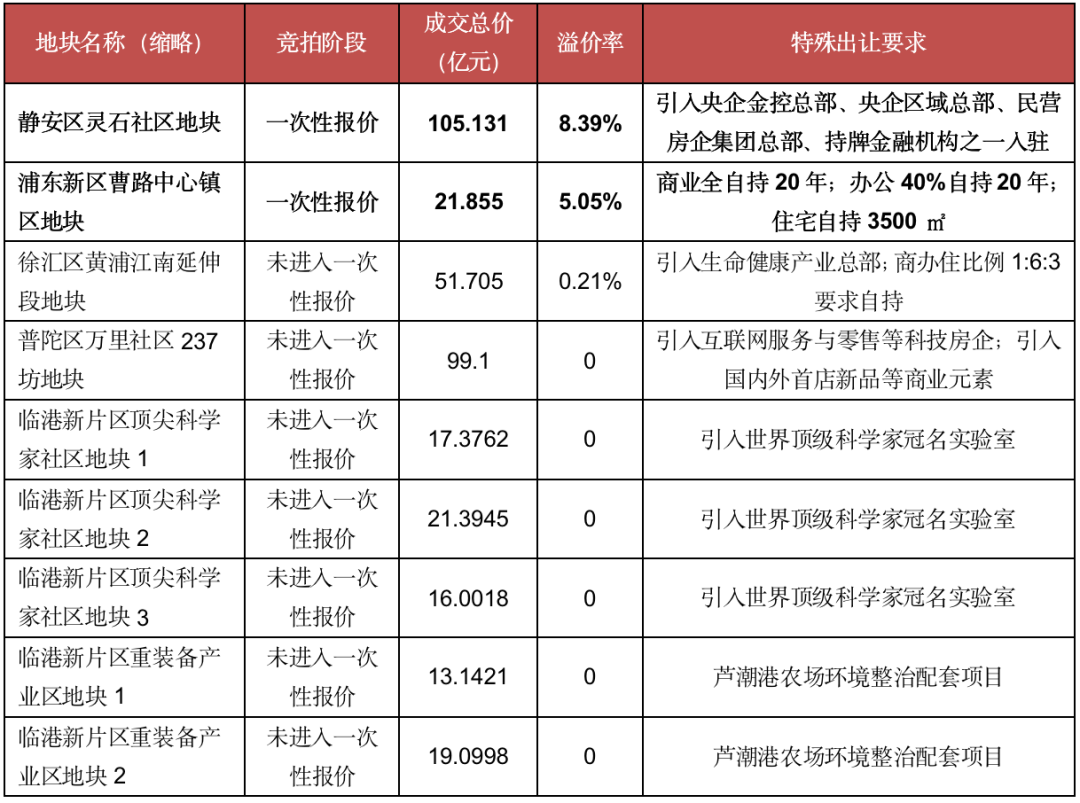 表:上海首輪集中供地中出讓要求較為嚴格的土地成交情況