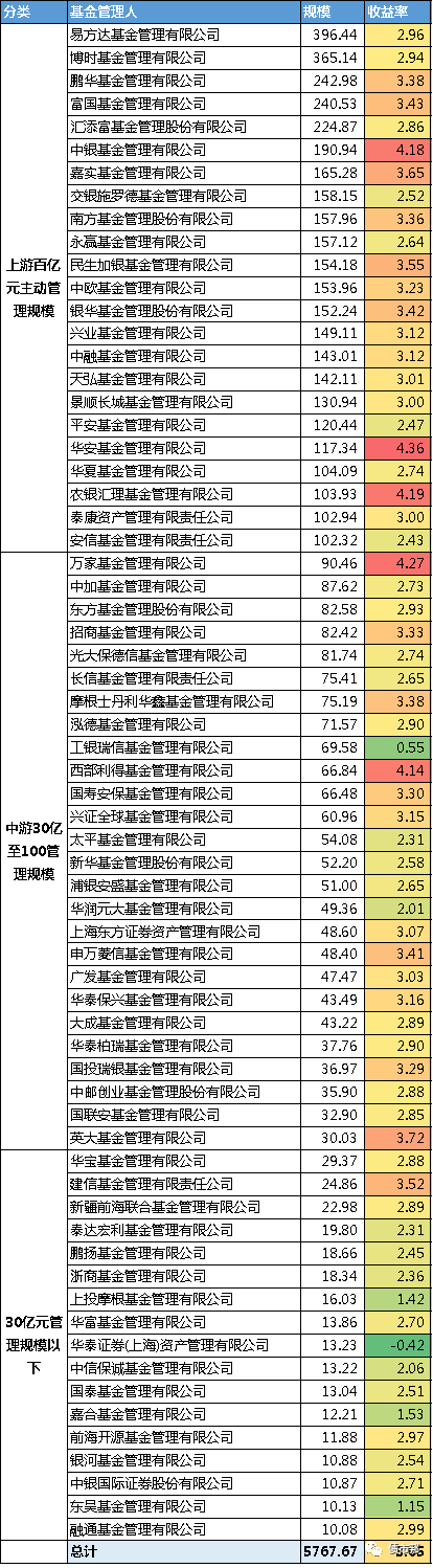 中長期純債基金主動管理規模在30億元以下的公募,均普遍表現不佳,債券投資還是很靠基本功的,沒有規模支撐的債券公募基金,投資時還是要更謹慎一些。華泰資管是唯一一家錄得負收益的機構,以高收益債為投資特點的華泰資管在去年實屬運勢不佳。