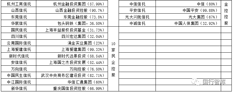 5、10家民企背景的信托公司分別為國(guó)民信托、四川信托、云南國(guó)際信托、愛(ài)建信托、新時(shí)代信托、安信信托、萬(wàn)向信托、民生信托、中江國(guó)際信托、新華信托。