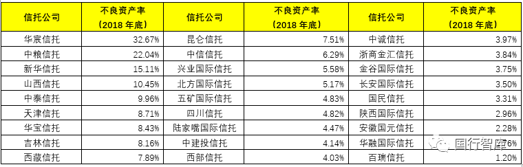 (1)華宸信托、中糧信托、新華信托和山西信托等4家信托公司的不良資產(chǎn)率在10%以上。