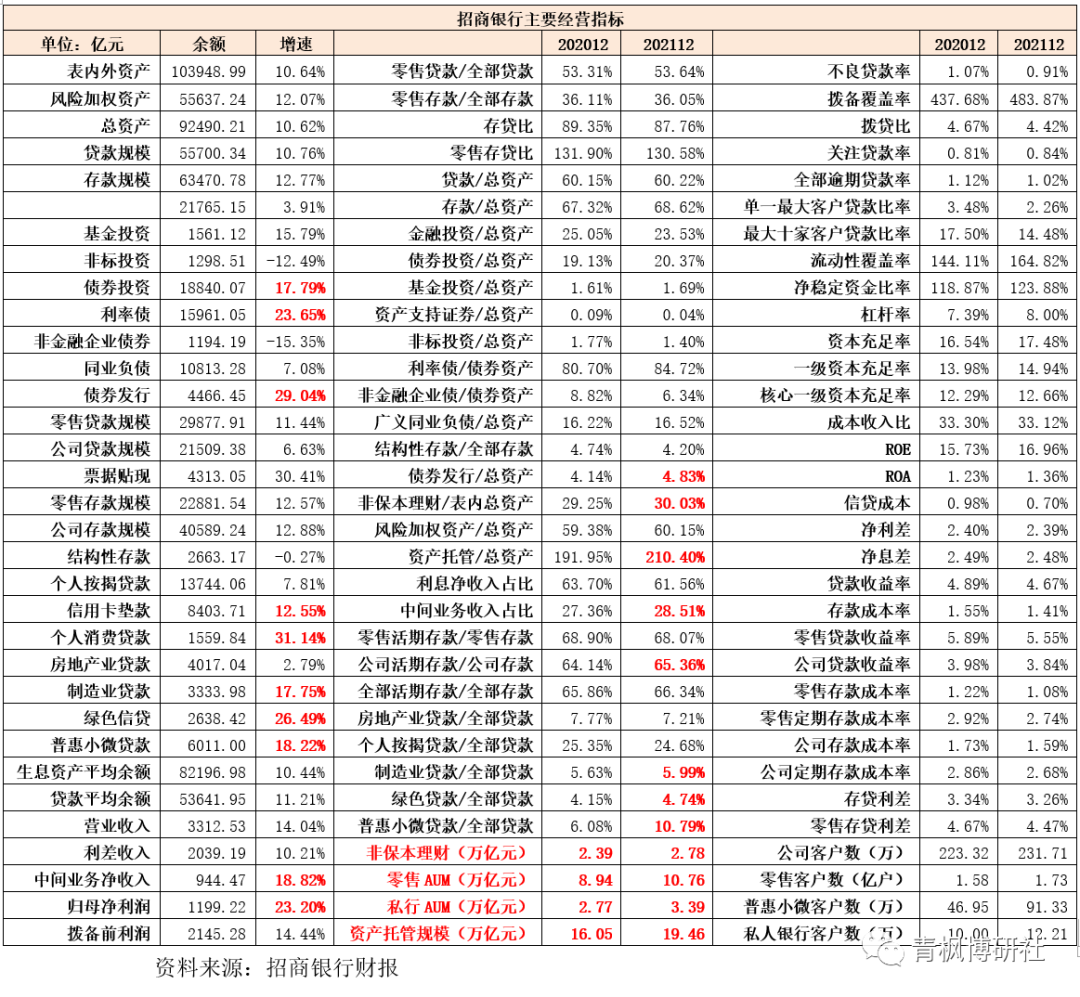 1、招行自2020年開始公布核心存款數據,體現出近年其對核心存款的重視。低成本的核心存款是一家銀行最重要的致勝法寶,在存款利率自律上限調整之后,明顯能夠感覺到招行更加重視低成本核心存款的拓展。從數據上來看,近年來招行低成本的核心存款增長較為亮眼。