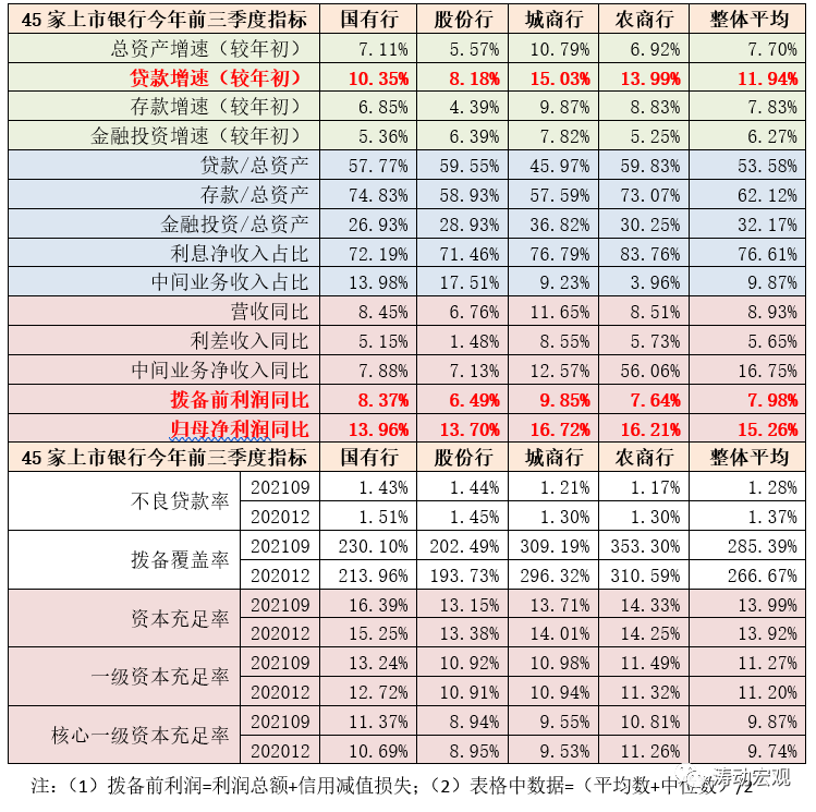 目前有45家上市銀行公布了今年前三季度經營情況(包括國有大行6家、10家股份行、17家城商行以及12家農商行)。
