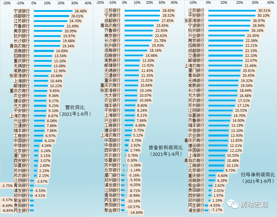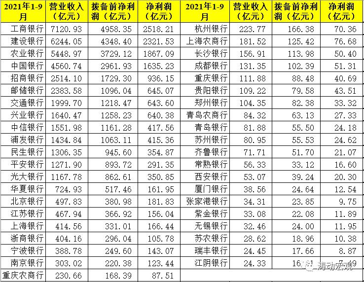 今年前三季度,有7家銀行的撥備前利潤同比增速超過20%、19家銀行的撥備前利潤同比增速超過10%、10家銀行的撥備前利潤同比出現下降。