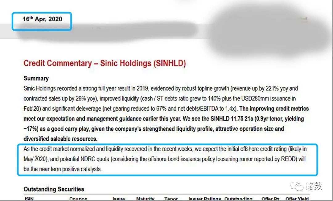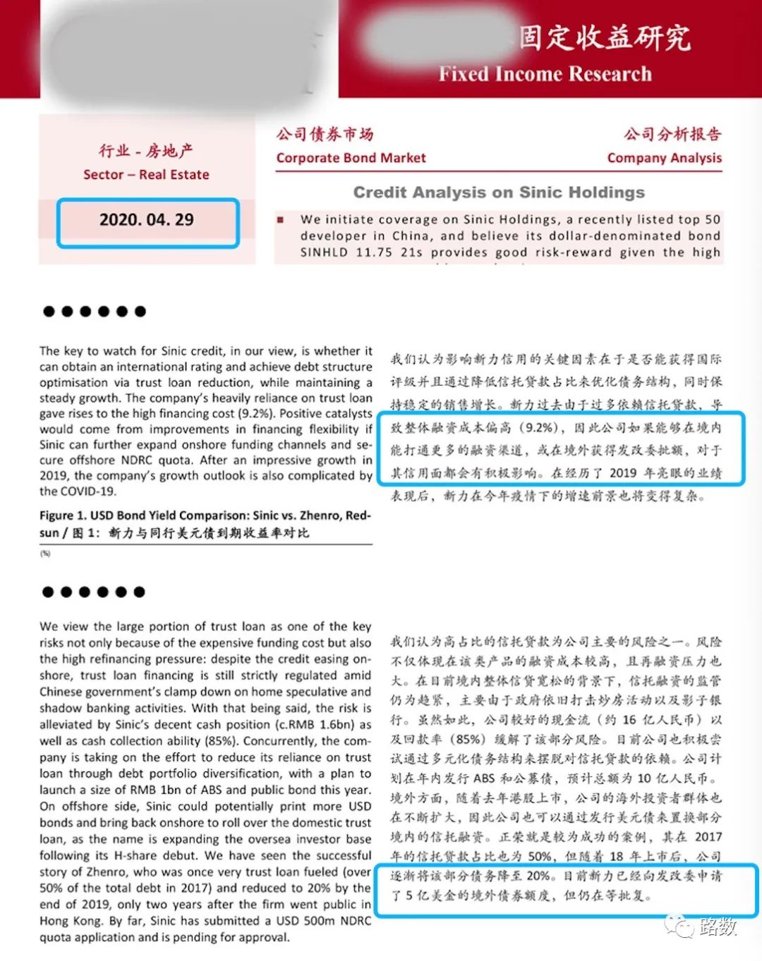 至少有3家機構在2020年4月發布的研究報告中明確表明:當時新力地產正處于申請發行外債額度中。注意,是進行時,而非完成時。▼
