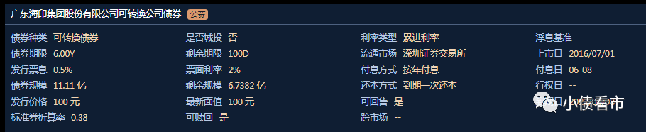 《小債看市》統計,目前海印股份僅存續一只“海印轉債”,存續規模6.74億元,將于2022年6月8日到期。