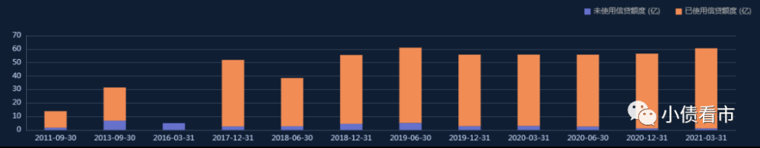 在備用資金方面,截至2021年3月末,海印股份銀行授信總額有60.61億元,未使用授信額度為1.14億元,可見其財務彈性欠佳。