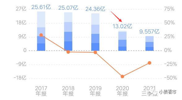 其實,自2020年起,由于受疫情和新收入準則影響,海印股份的營業收入和利潤已大幅下降,其中歸母凈利潤下滑幅度高達77.13%。