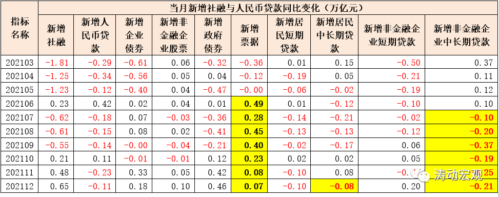 (一)社融、信貸數(shù)據(jù)與實(shí)體經(jīng)濟(jì)之間的關(guān)聯(lián)性較高,2021年6-12月,票據(jù)同比分別多增0.49萬(wàn)億、0.28萬(wàn)億、0.45萬(wàn)億、0.40萬(wàn)億、0.23萬(wàn)億、0.08萬(wàn)億與0.07萬(wàn)億,連續(xù)7個(gè)月同比持續(xù)多增,7個(gè)月合計(jì)同比多增1.99萬(wàn)億,是社融里面表現(xiàn)最亮眼的部分,體現(xiàn)為資產(chǎn)荒現(xiàn)象。