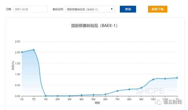 開篇先來貼一張圖,這是12月23日的各期限國股銀票轉貼現利率。如大家直觀所見,1月期、2月期、3月期利率已經跌出了地板價。