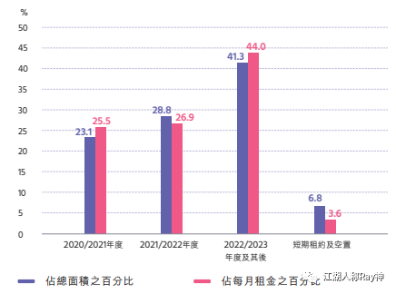 確切地說,租約到期分布其實(shí)不能算是一項(xiàng)指標(biāo),而是一組統(tǒng)計(jì)數(shù)據(jù)。它用于分析在未來不同時間區(qū)間到期的合約對整體項(xiàng)目造成的影響程度,以評價項(xiàng)目經(jīng)營持續(xù)性的風(fēng)險。