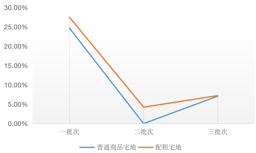 從成交溢價率來看,配租宅地的平均成交溢價率往往也高于普通商品住宅地塊,即使在熱度明顯下降的第二批也是如此。