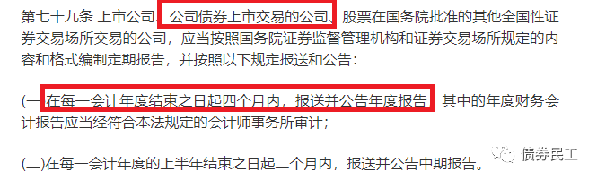 根據新《證券法》第七十九的明確要求,債券發行人需要在4月30日之前披露年報報。