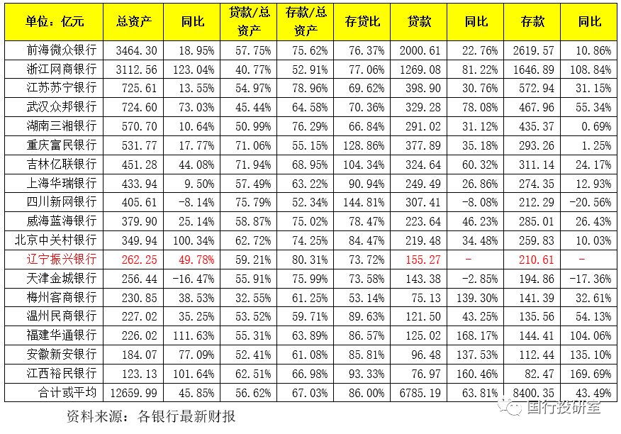緊隨其后的是湖南三湘銀行、重慶富民銀行、吉林億聯(lián)銀行、上海華瑞銀行、四川新網(wǎng)銀行、威海藍海銀行、北京中關(guān)村銀行、遼寧振興銀行等。
