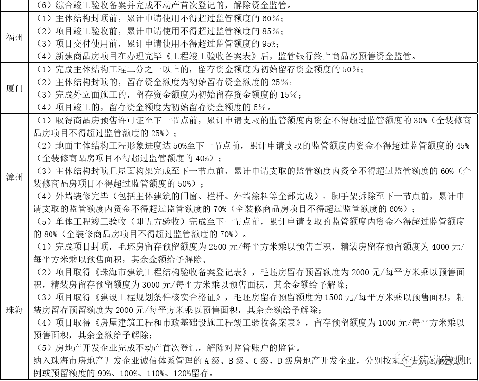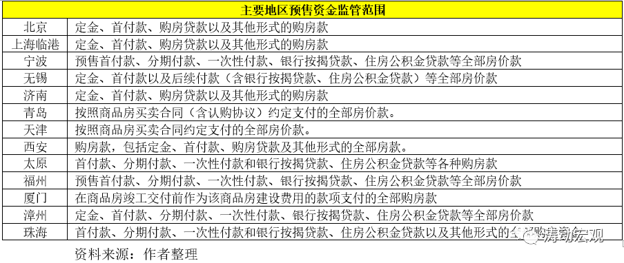西安地區(qū)亦明確預(yù)售資金監(jiān)管是對用于本預(yù)售項(xiàng)目的建筑安裝費(fèi)用、小區(qū)內(nèi)配套設(shè)施建設(shè)費(fèi)用、全裝修商品住房項(xiàng)目裝修費(fèi)用、開發(fā)建設(shè)費(fèi)用和償還項(xiàng)目開發(fā)貸款等預(yù)售資金的監(jiān)督管理。