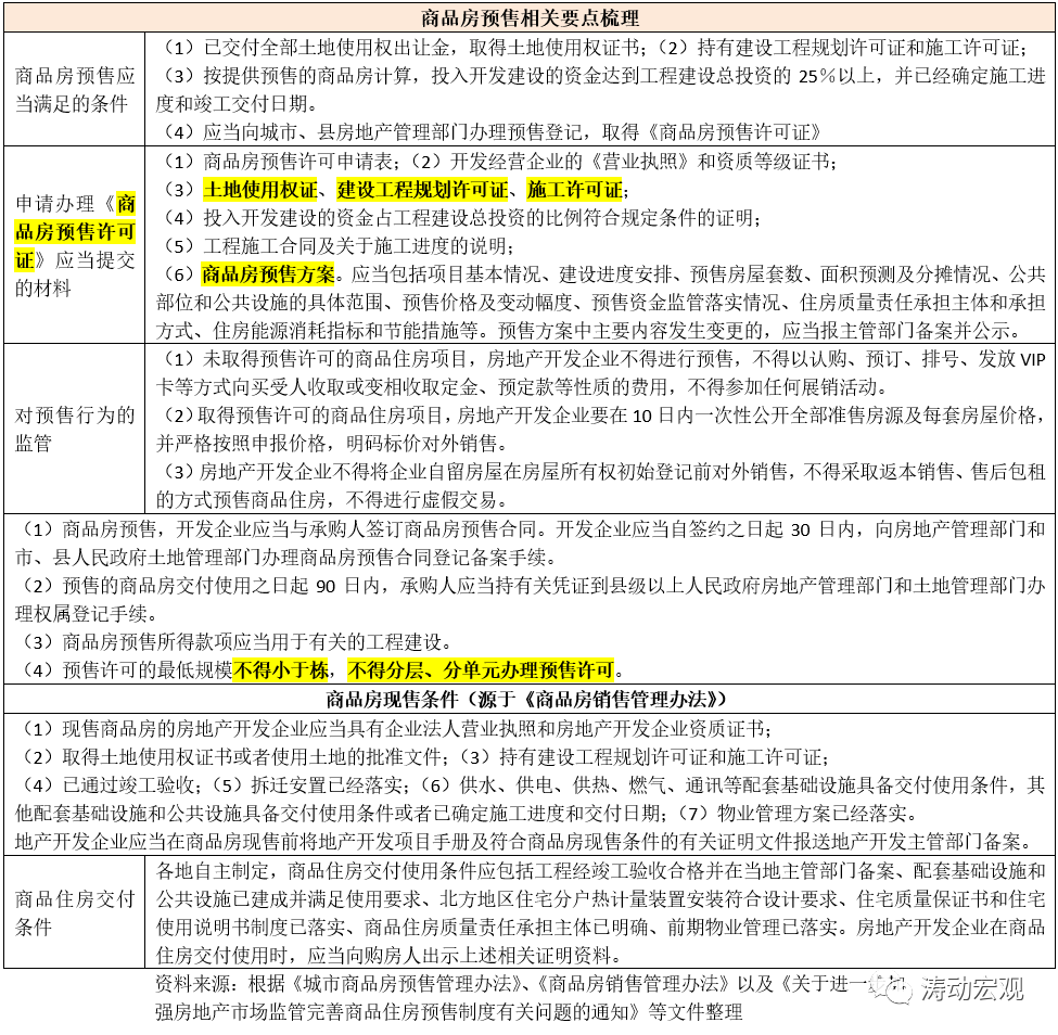 與商品房預(yù)售有關(guān)的政策文件主要包括《城市房地產(chǎn)管理法》、《城市商品房預(yù)售管理辦法》、《城市房地產(chǎn)開發(fā)經(jīng)營管理?xiàng)l例》和《商品房銷售管理辦法》以及《關(guān)于進(jìn)一步加強(qiáng)房地產(chǎn)市場監(jiān)管完善商品住房預(yù)售制度有關(guān)問題的通知》。2010年4月13日,住建部發(fā)布的《關(guān)于進(jìn)一步加強(qiáng)房地產(chǎn)市場監(jiān)管完善商品住房預(yù)售制度有關(guān)問題的通知》(建房(2010)53號(hào))給出了整體政策框架。具體如下: