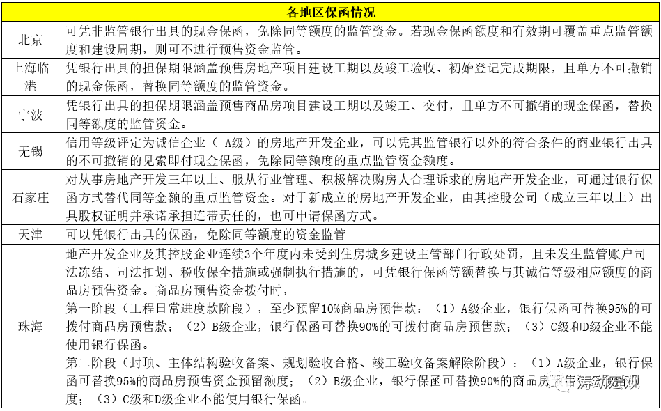 (七)部分地區(qū)明確可以通過保函來替換對應(yīng)監(jiān)管額度