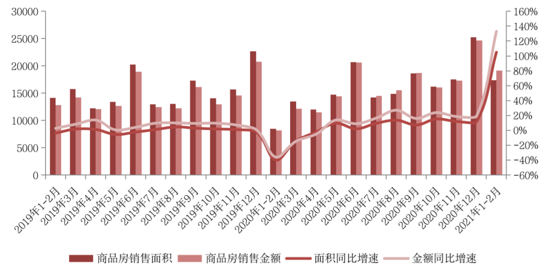 2021年前2月,房地產(chǎn)市場逐漸走出疫情影響,并呈現(xiàn)出“淡季不淡”的特點。