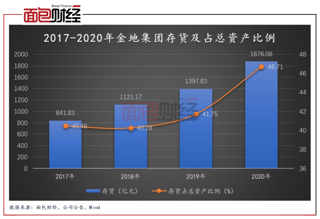 截至2020年末,公司存貨為1876.08億元,占總資產(chǎn)的比例為46.71%,占比處近年來高位,未來仍存在減值風險。
