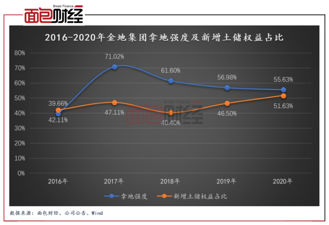 按照房地產(chǎn)行業(yè)的特性,結(jié)算毛利率相對來說是滯后的,從拿地毛利率兌現(xiàn)到結(jié)算毛利率,可能與融資成本、推盤節(jié)奏和結(jié)算結(jié)構(gòu)有關(guān)。追溯金地集團過往拿地及銷售數(shù)據(jù),自2016年開始,公司尋求銷售規(guī)模的快速增長,與之匹配的拿地儲備也全面加速。