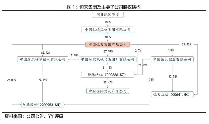 恒天集團(tuán)為老牌央企,于1998年由原國家紡織工業(yè)部所屬中國紡織機(jī)械(集團(tuán))有限公司、中國紡織工業(yè)對外經(jīng)濟(jì)技術(shù)合作公司、中國紡織機(jī)械和技術(shù)進(jìn)出口有限公司等6家公司組建而成。2017年6月,恒天集團(tuán)整體并入中國機(jī)械工業(yè)集團(tuán)有限公司,不再由國資委直接監(jiān)管,在央企層級上有所降級。