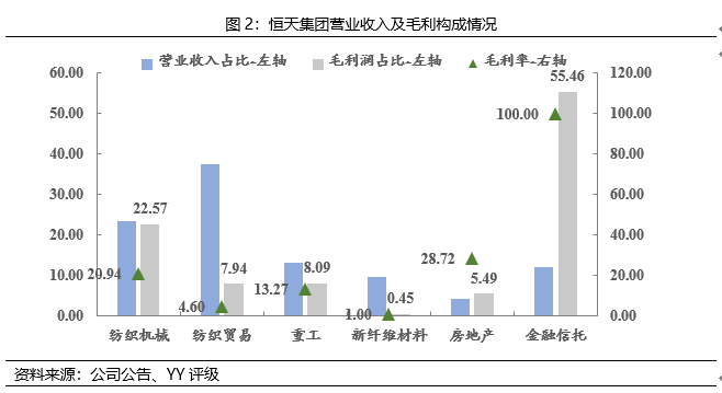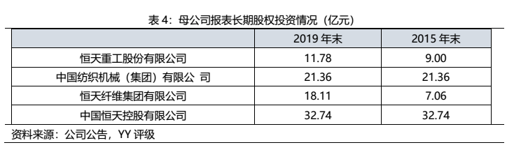 新型纖維材料是公司拓展的新業(yè)務(wù),與紡織機(jī)械業(yè)務(wù)有協(xié)同效應(yīng),但開發(fā)成本較大、常規(guī)產(chǎn)品產(chǎn)能過剩,盈利能力不穩(wěn)定,截至2019年末資產(chǎn)規(guī)模68.0億元,2019年實現(xiàn)凈利潤凈2.4億元;房地產(chǎn)業(yè)務(wù)較為穩(wěn)定,截至2019年末,共有6個在售房地產(chǎn)項目,截至2020年3月末,共有5塊未開發(fā)土地,對營業(yè)收入形成補充;投資業(yè)務(wù)方面,恒天投資主要負(fù)責(zé)為集團(tuán)內(nèi)各子公司進(jìn)行股權(quán)投資業(yè)務(wù),恒天控股為集團(tuán)境外融資及資本運作平臺。