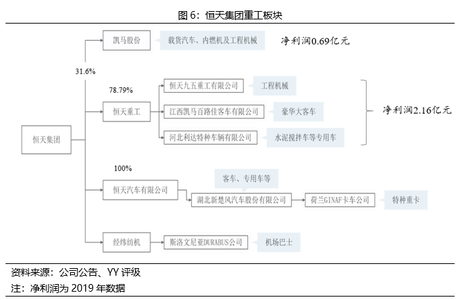 公司重工板塊的經(jīng)營實體有凱馬股份、恒天九五重工有限公司等,其中上市公司凱馬股份為主要經(jīng)營主體,主營載貨汽車、內(nèi)燃機(jī)及工程機(jī)械。