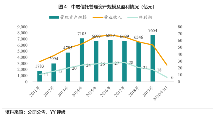 2010年,子公司經(jīng)緯紡機(jī)收購了中植系旗下中融信托部分股權(quán),從此納入合并范圍,形成“紡機(jī)+金融”雙主業(yè)運營格局。中融信托也由此開啟高速發(fā)展歷程,成為行業(yè)黑馬,曾一度與中信信托、平安信托并列三大巨頭。但近兩年來,公司的收入和利潤皆發(fā)生了下滑,發(fā)展勢頭大不如前,用益金融信托研究院數(shù)據(jù)顯示,參考信托公司主動管理能力、盈利能力、抗風(fēng)險能力等多個維度進(jìn)行分析,2019年度中融信托的綜合實力已跌至行業(yè)第九。