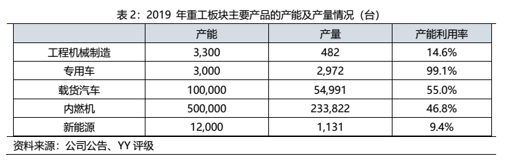 重工行業(yè)是投資拉動型行業(yè),其市場需求直接受到固定資產(chǎn)投資和工程項目工程量的拉動,需求可持續(xù)性弱。因此看到歷年公司主要產(chǎn)品的產(chǎn)量和產(chǎn)能利用率波動很大,而產(chǎn)能是相對固定的,因此經(jīng)營風(fēng)險較高。總體來說,近年受新能源汽車退坡等因素的影響,行業(yè)整體處于低迷狀態(tài),截至2019年末除專用車外,其他四種產(chǎn)品類型產(chǎn)能利用率都較低,前景黯淡。