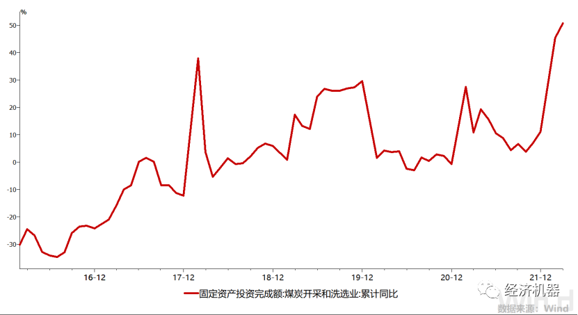 過去一段時間,環保、雙碳、安全等硬約束下,供給日益剛性,已經威脅到能源供應安全。去年“用電荒”也讓我們意識到能源安全的重要性,供給側改革不應被庸俗化為“供給緊縮”。去年以來,中央已經開始強調要立足我國煤炭為主的能源結構進行綠色轉型。今年我們也看到了政府在能源保供工作上的努力,俄烏沖突則加劇了這一進程。一季度煤炭開采及采選業固定資產投資同比增長超50%,供給端擴產能力度顯著。