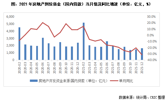 2021年房地產(chǎn)開發(fā)資金來源(國內(nèi)貸款)達(dá)23296億元,同比降幅較11月末的10.8%進(jìn)一步擴到12.7%,企業(yè)融資端仍難言回暖。