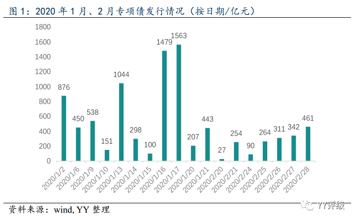 2月份專項債發(fā)行還算剎住了車,到2月下旬才拉開序幕,且日均發(fā)行規(guī)模上較1月份也明顯降低,全月共發(fā)行2350億元。1-2月共使用下達(dá)額度的73.6%,平均發(fā)行期限14.5年,平均發(fā)行利率3.46%。