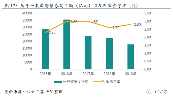 一般政府債券資金也是一般公共預(yù)算的資金來源,不過一般公共預(yù)算是有赤字率考核限制的。今年的赤字率預(yù)計不會打破3%的紅線,因?yàn)閿?shù)十年來我國政府一直保持了較為嚴(yán)格的財政紀(jì)律約束,這一指標(biāo)具備很強(qiáng)的警戒意義,一旦突破將大大損傷國內(nèi)外社會對中國經(jīng)濟(jì)的信心。