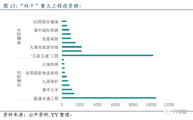 在2月23日云南省新冠肺炎疫情防控作業(yè)新聞發(fā)布會上,多個重磅音訊傳來:云南省在施行“四個一百”要點(diǎn)項目和“補(bǔ)短板、增動力”省級要點(diǎn)前期項目方案的基礎(chǔ)上,提出施行基礎(chǔ)設(shè)備“雙十”重大工程,構(gòu)建快速、高效、智能、安全、綠色的現(xiàn)代基礎(chǔ)設(shè)備網(wǎng)絡(luò)。此次“雙十”工程總出資額3.6萬億元,其中在建項目1.6萬億元,新建項目2萬億元。其中“互聯(lián)互通”工程和“能通全通”兩大項目的投資額均超過1萬億元。