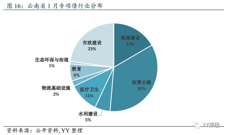 作為配套資金支持,云南省于1月6日發(fā)行了10筆專項債,共計450億元,涉及收費(fèi)公路、鐵路建設(shè)、市政建設(shè)、醫(yī)療衛(wèi)生等領(lǐng)域,其中投向基建的比例超過80%。