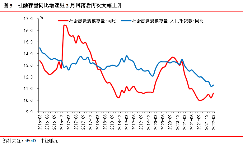 3月社融信貸總量超預期,信貸結構仍一般,短貸票據依舊貢獻主要增量、企業中長期貸款邊際好轉、居民中長期貸款依舊低迷,地產銷售仍不佳。近期國內疫情形勢嚴峻、經濟形勢出現超預期變化,經濟下行壓力加大,寬信用在慢推進,穩增長政策繼續加碼。