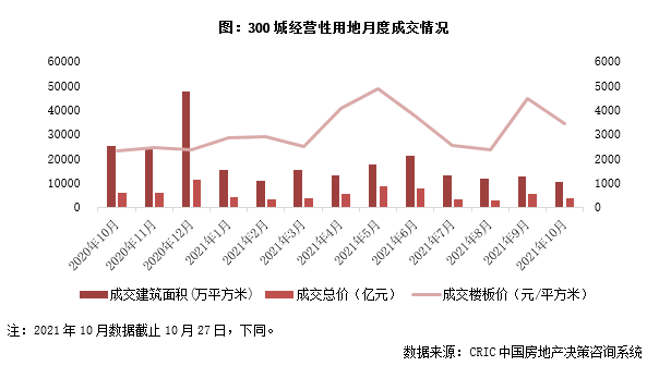 10月,樓市延續(xù)9月低迷行情,土地市場(chǎng)本月溢價(jià)率創(chuàng)下歷史新低。