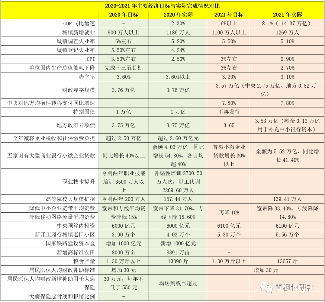 (二)2020-2021年目標與實際完成情況對比