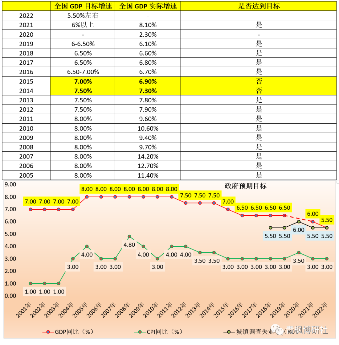 (二)CPI目標不變,城鎮調查失業率5.50%以內(較2021年更激進)