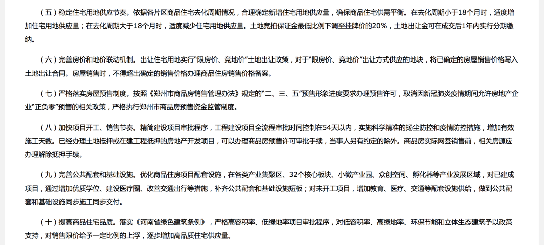 4.減輕主體壓力,調整土地出讓規則。土地供給端下調土地競拍保證金最低比例至掛牌價的20%,土地出讓金可在成交后1年內實行分期繳納。