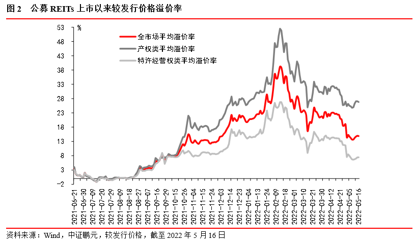我國公募REITs共發(fā)行12只(去年首批9只,去年二批2只,今年1只),發(fā)行規(guī)模為458.12億元,總市值為526.32億元,全市場溢價率為14.89%,產(chǎn)權(quán)類(6只)溢價率為26.81%,特許經(jīng)營權(quán)類(6只)溢價率為7.43%。