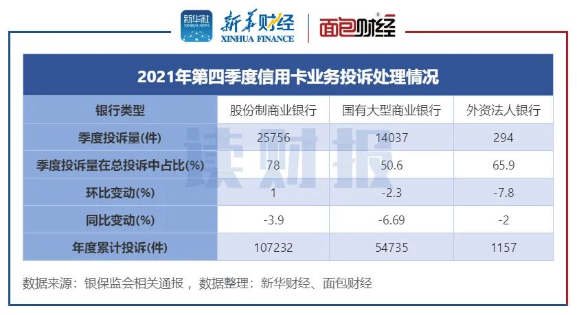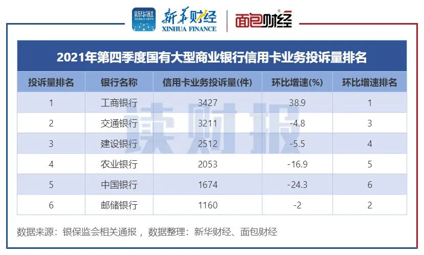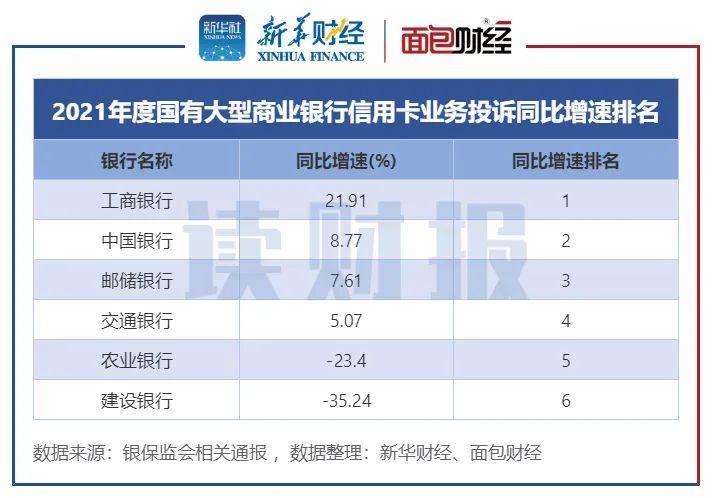 2021年第四季度,建設銀行和農業銀行的信用卡業務投訴量同比顯著下降,降幅分別達到35.24%和23.4%。