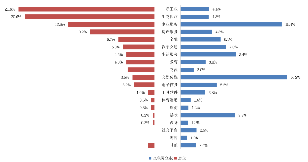 圖:房企與互聯網公司主要投資領域占比分布