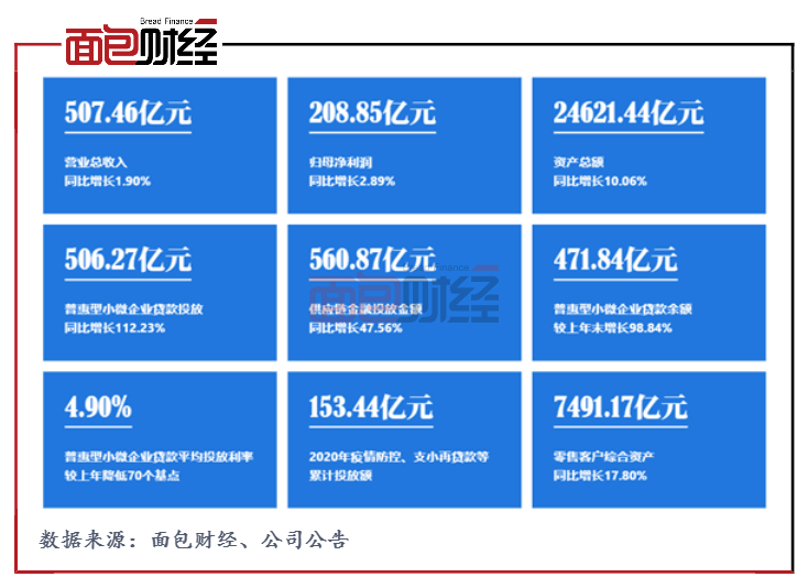 財報數據顯示,2020年上海銀行普惠型小微企業貸款投放金額為506.27億元,同比增長112.23%。截至年末,普惠型小微企業貸款余額471.84億元,較上年末增長98.84%。另外,該行主動減費讓利,普惠型小微企業貸款平均投放利率4.90%,低于上年平均定價水平70個基點。