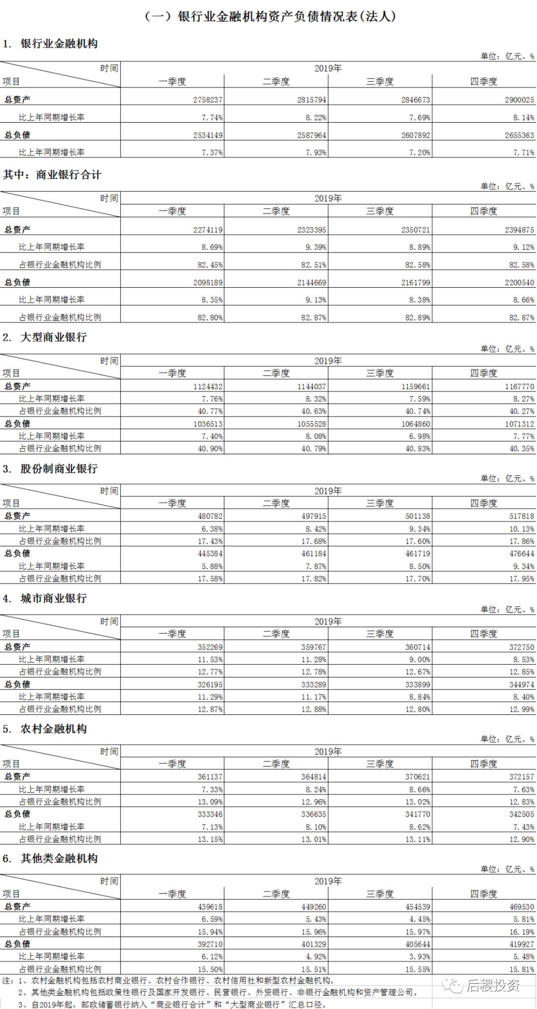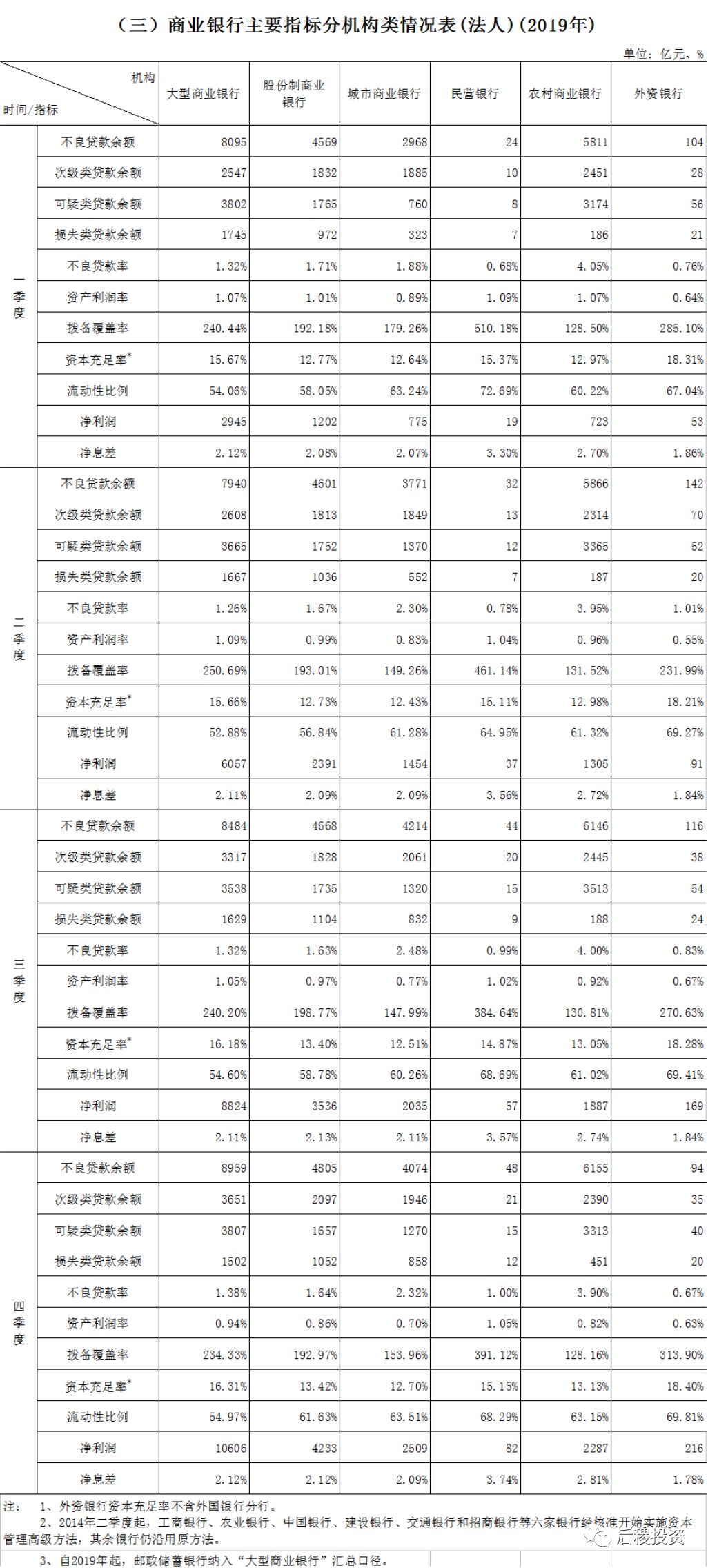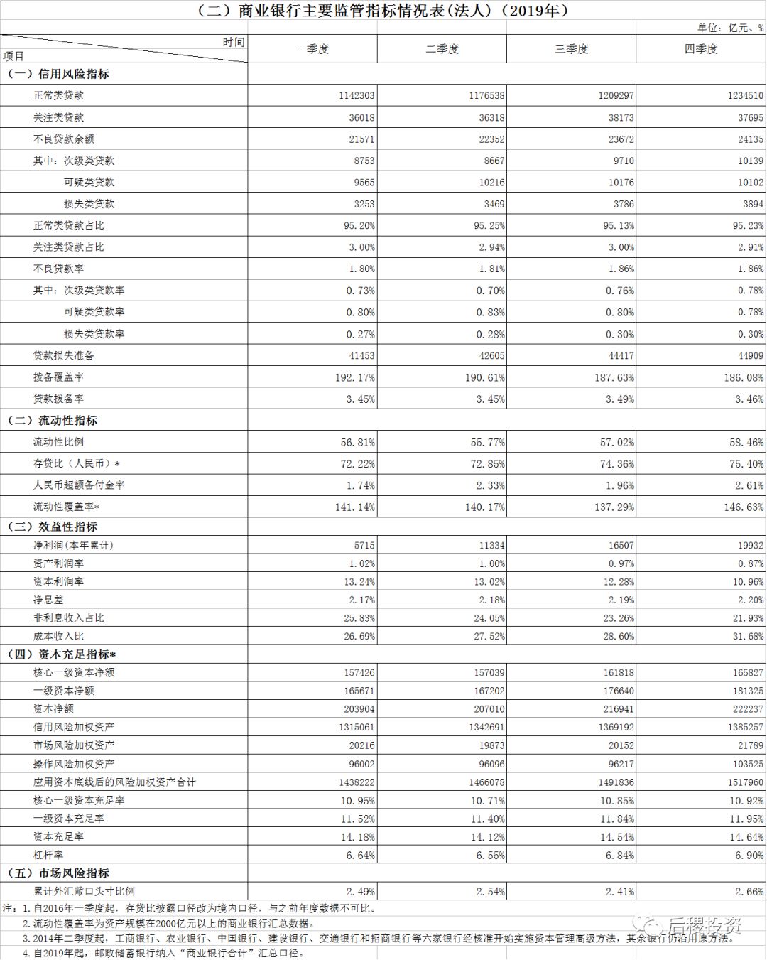 1、2019年四季度銀行業(yè)主要監(jiān)管指標