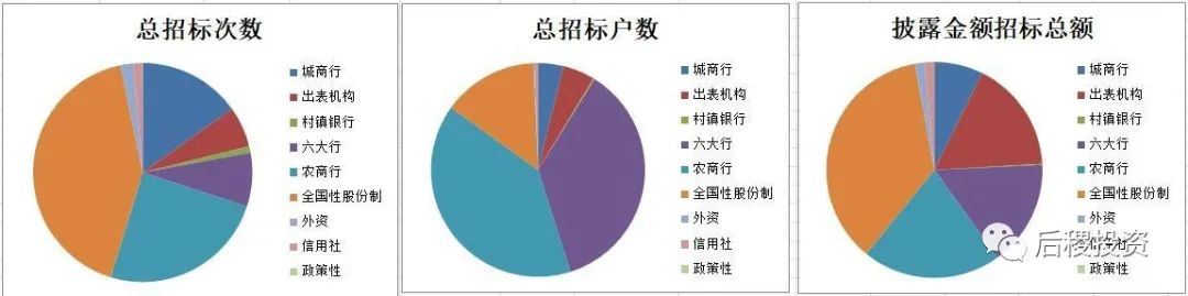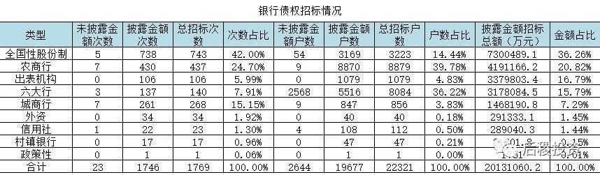 從招標次數(shù)上看,12家全國性股份制銀行最多,占了總招標次數(shù)的42%,農(nóng)商行和城商行次數(shù)也均占10%以上。但從戶數(shù)上看則是農(nóng)商行和六大國有銀行(新增郵儲銀行,但未見郵儲銀行的招標記錄),占比39.78和36.22%。六大行的債權招標戶數(shù)中未透露金額的比例較高的原因,是因農(nóng)行廣東分行在5月份發(fā)布了一次大批量債權的處置公告,未透露債權數(shù)額。從金額占比上看,全國性股份制銀行招標總額占比最多,農(nóng)商行排第二,而銀行出表機構的公告數(shù)據(jù),則不太好歸類的具體哪一類銀行中去,但應當以六大行為多。