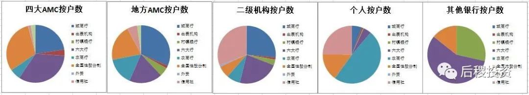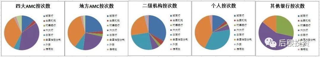按戶數(shù)看,持牌AMC從各類型的銀行的受讓比例與受讓次數(shù)呈正比,城商行、全國性股份制銀行和國有六大行占了戶數(shù)的絕大多數(shù),而二級機構和自然人則從信用社受讓的戶數(shù)比例較高,這也是符合市場特征的。