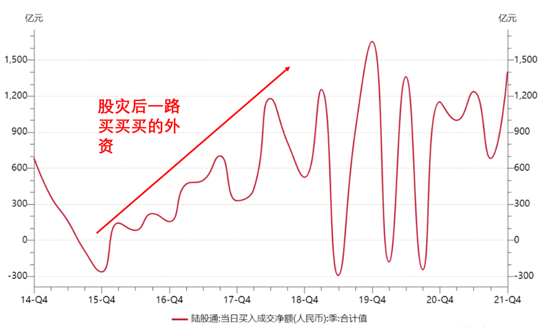 到現在,外資還持有2.2萬億元的A股市值,和2015年股災前的配資盤規模相當,沖擊還沒有結束。
